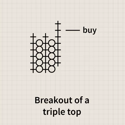 A double top or triple top breakout involves an X point that exceeds the high of the previous one or two X columns.